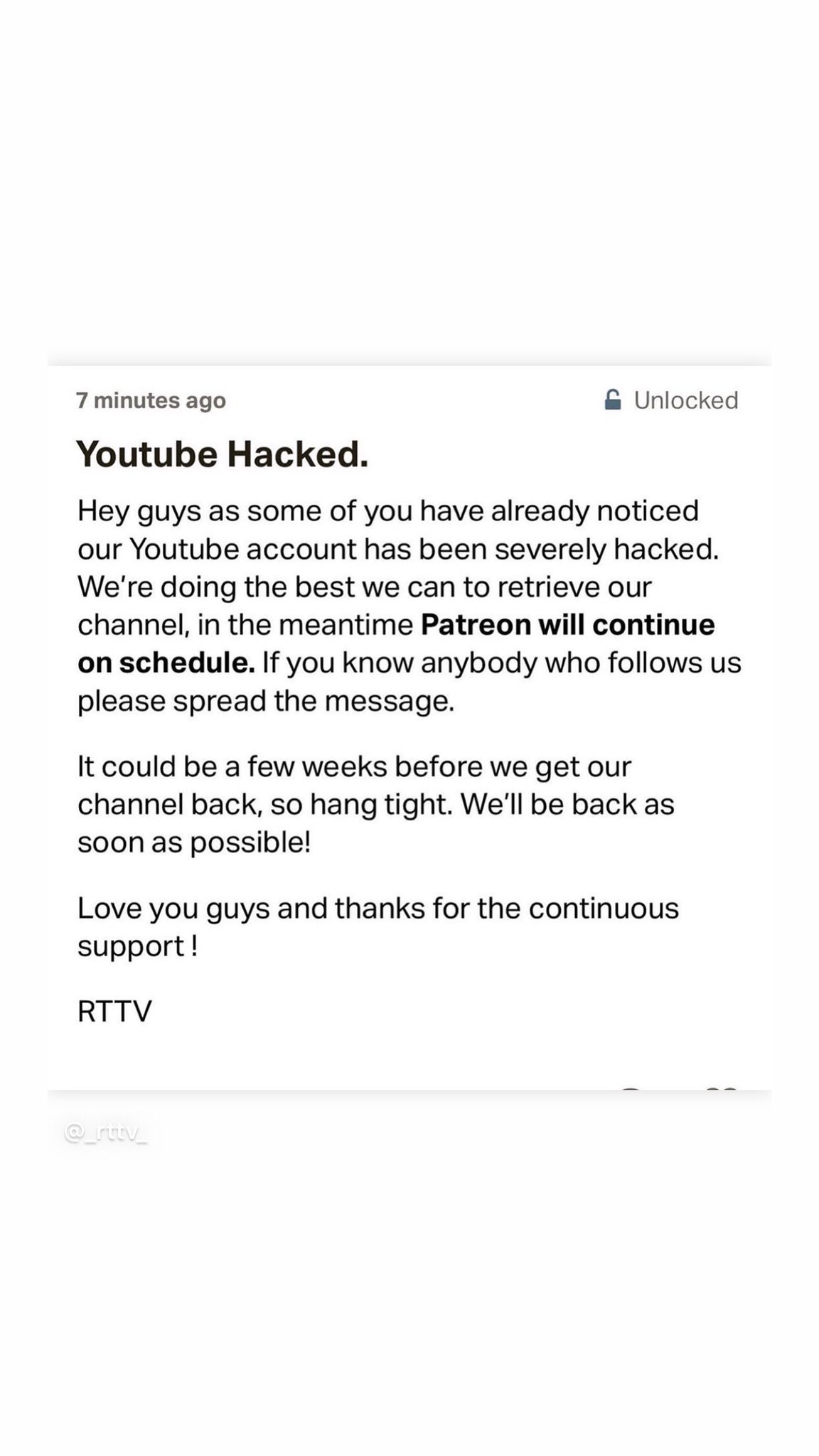 Ive never heard of RT TV before but this situation seems incredibly similar to what happened to YouTuber Meghan Rienks who had her channel hacked last spring. A top cable network in both total viewers.